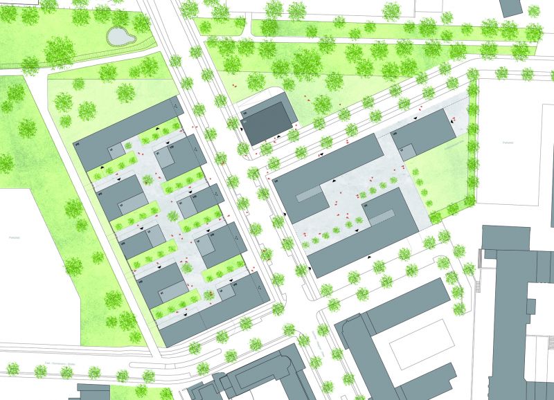Die städtebaulichen Entwürfe zeigen die vorgeschlagenen Bebauungsmöglichkeiten auf. Diese unterscheiden sich u. a. hinsichtlich der Anordnung der Gebäude auf dem Grundstück, der Höhe und der Anmutung.