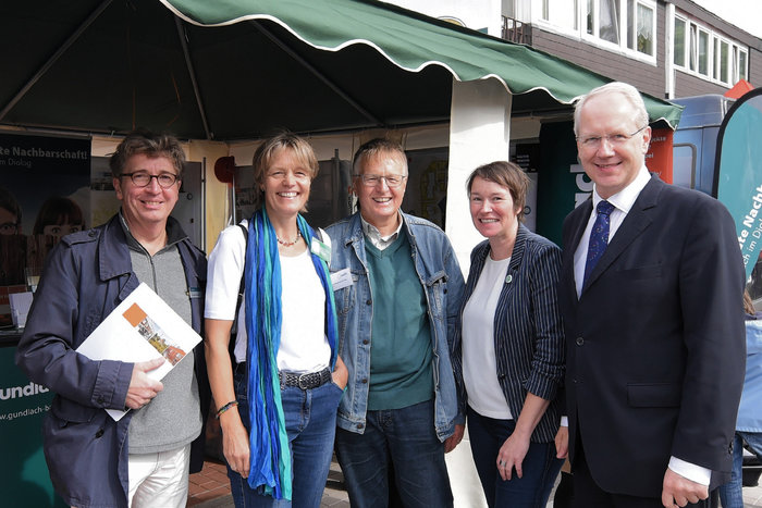 Vorbereitet auf Starkregen, Wind und Hitze, wird das neue Wohnquartier "Herzkamp" zukünftigen Veränderungen des Klimas mit ausgeklügelten Luftschneisen und Versdickerungsmulden trotzen. Auch Herr Oberbürgermeister Stefan Schostok und Frau Elisabeth Czorny von der LH Hannover waren mit von der Partie und lobten das zukunftträchtige Konzept. Auf dem 9,2 Hektar großen Areal wird Gundlach u.a. 315 Reihenhäuser, Miet- und Eigentumswohnungen errichten. Die Stadt wird nach Fertigstellung über die Hälfte der Fläche einschließlich Straßen und Boltzplatz verfügen.