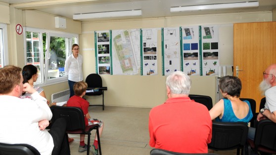 Am 20. Juni lud Gundlach zur gemeinsamen Informationsveranstaltung auf der Baustelle am Altenbekener Damm ein. Nachbarn und Interessierte erhielten die Möglichkeit Einfluss auf die zukünftige Gestaltung des neuen Kinderspielplatzes zu nehmen. Hierzu informierten Projektleiter Lars Brakebusch und Landschaftsarchitektin Kerstin Großkopf vom Büro [landschaftsarchitektur diekmann] über den Entwurf zur Neugestaltung anhand von Plänen.