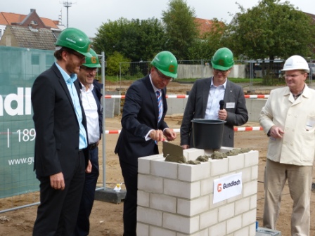 Am Mittwoch fand im Beisein zahlreicher Vertreter aus Politik, Wirtschaft und Verwaltung die traditionelle Grundsteinlegung für den zweiten Bauabschnitt der Heider Marktpassage statt. Dabei griffen Bürgermeister Ulf Stecher, Geschäftsführer der Gundlach Tochtergesellschaft Heider Marktpassage GmbH & Co. KG, Dr. Markus Böger, Gundlach-Geschäftsführer Lorenz Hansen und der Architekt Jörg Steinwender, selber zur Kelle und mauerten traditionell einige Euro, Wünsche und auch eine aktuelle Tageszeitung mit ein.