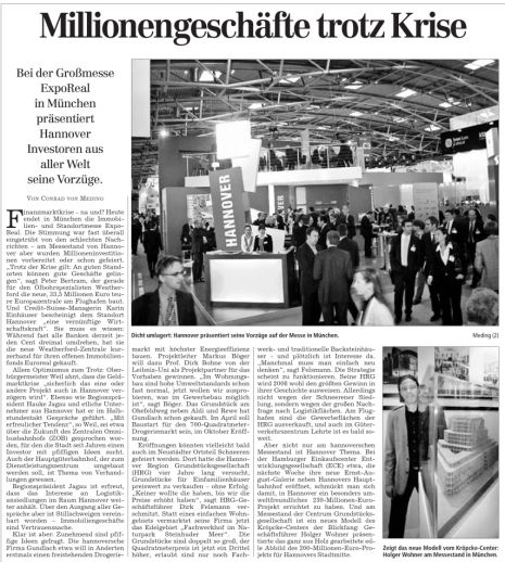 Obwohl dieses Jahr die Stimmung aufgrund der schlechten Nachrichten von den Finanzmärkten getrübt war, gab es auf dem Stand Hannover nur guten Nachrichten zu verkünden. So titelte die Hannoversche Allgemeine Zeitung in Ihrer Ausgabe vom 8. Oktober "Millionengeschäfte trotz Krise".