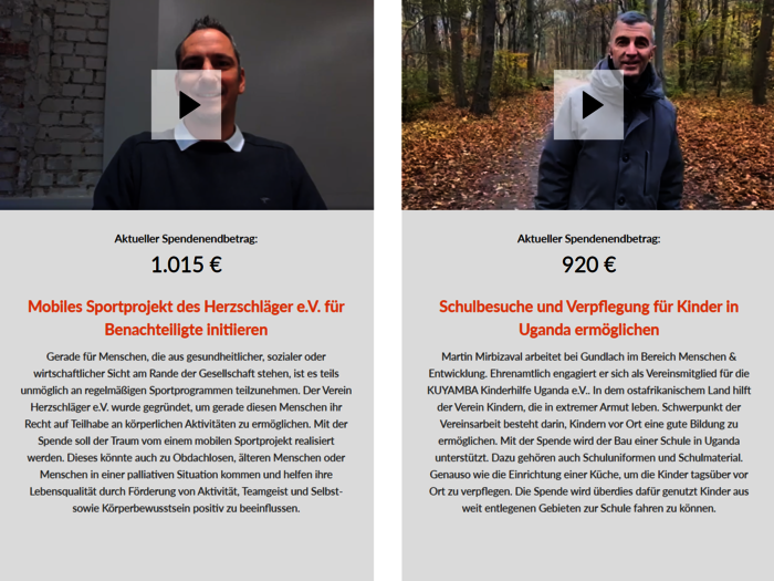 In unserer Weihnachtsaktion haben wir zwei unterstützenwerte Projekte vorgestellt, für die sich zwei Gundlacher persönlich engagieren. Die Teilnehmer:innen der Aktion konnten zwischen dem "Mobilen Sportprojekt des Herzschläger e.V. für Benachteiligte" und "Schulbesuchen und Verpflegung für Kinder in Uganda der KUYAMBA Kinderhilfe Uganda e.V." wählen.