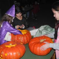 Ab 15 Uhr wurde gegessen und gesellig beieinander gesessen. Draußen wurden mit Hilfe der Senioren Kürbisfratzen in die ausgehöhlten Kürbisse von den Kindern geschnitzt. Später dienten uns diese als Lichtquelle.