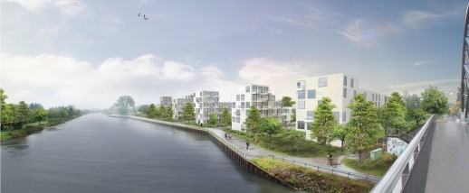 Er sieht auf dem rund 19.000 m² Grundstück am Mittellandkanal insgesamt rund 100 Wohnungen mit zwei bis fünf Zimmern und 50 Reihenhäuser vor. Investiert werden ca. 30 Millionen Euro. Dirk Streicher, Vorstand der Delta Bau AG, betont: „Das Projekt soll im mittleren Preissegment Wohnen im Neubau in der Stadt ermöglichen.“ „Wir wollen gemeinsam ein lebenswertes Wohnquartier am Wasser realisieren. Der Entwurf schafft dies mit vielen Quartiershöfen und Plätzen“, so Gundlach Geschäftsführer Lorenz Hansen.