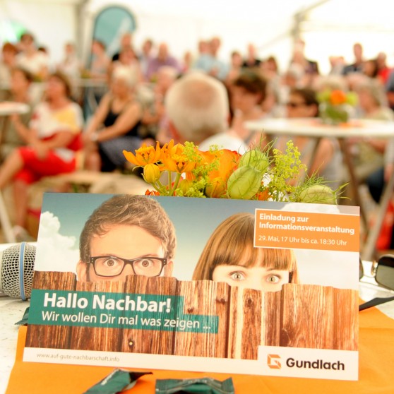 Auf gute Nachbarschaft! Gundlach im Dialog. Unter diesem Motto macht Gundlach die Planung seiner Neubauprojekte transparent und stellt sie in einen öffentlichen Bürgerdialog mit Nachbarn und Interessierten.