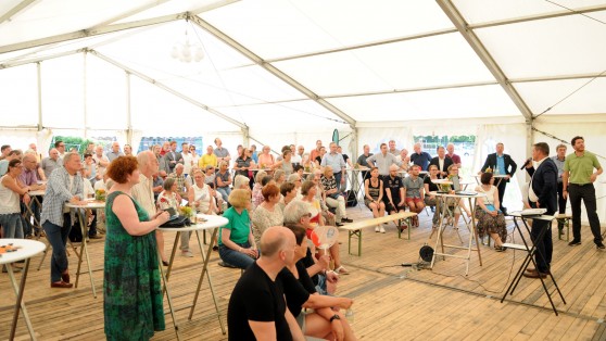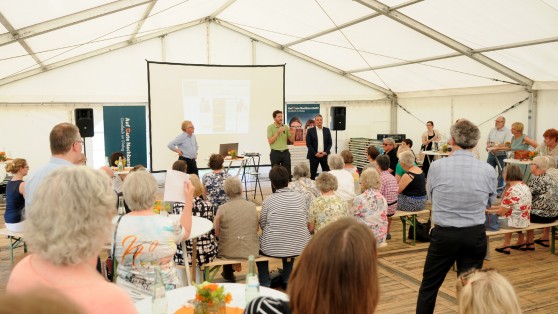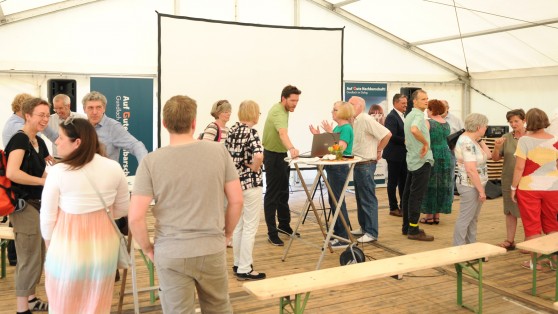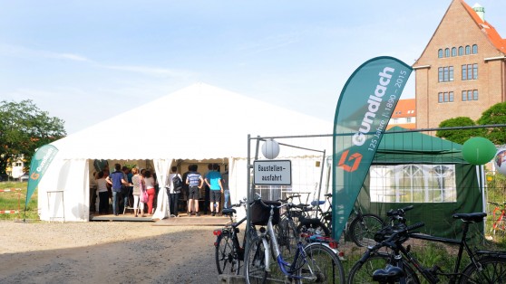 In der Veranstaltung informierte Gundlach über den Stand der Neubauplanung in der Günther Wagner Allee - gegenüber der mit mehreren Preisen ausgezeichneten Gundlach Wohnanlage VIER (www.vier-gundlach.de/start.html). Erfreulich war das am 29. Mai knapp 100 Anwohner und Interessierte in einem Zelt auf dem zukünftigen Baufeld zusammenkamen.