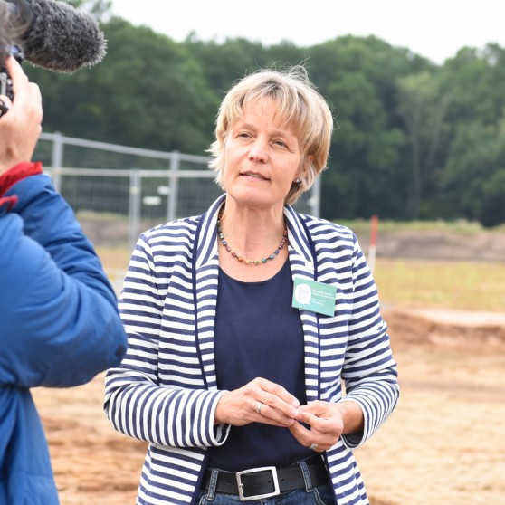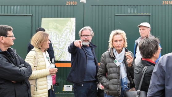 Landschaftsarchitekt Christoph Schonhoff führte durch den Nachmittag. Elisabeth Czorny, Bereichsleiterin Umweltschutz der Landeshauptstadt Hannover, Andreas Kramer, Gundlach Projektleiter und Kornelia Vauth vom Gundlach Bauträger erläuterten die Besonderheiten des Bauvorhabens mit Blick auf ein klimaangepasstes Bauen.