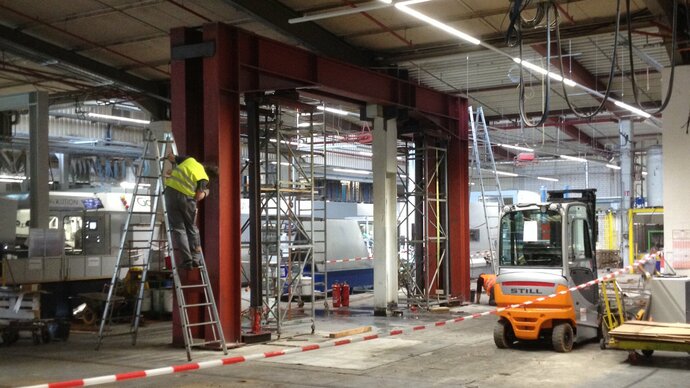 - Bestehende Stahlstütze wurde für den Einbau einer Bobst-Maschine entfernt