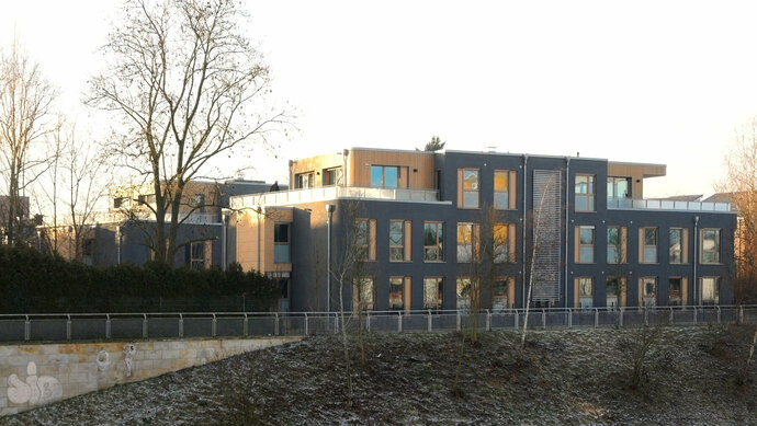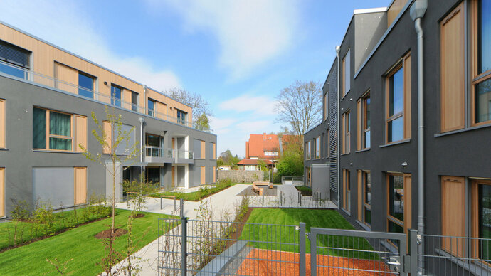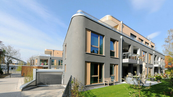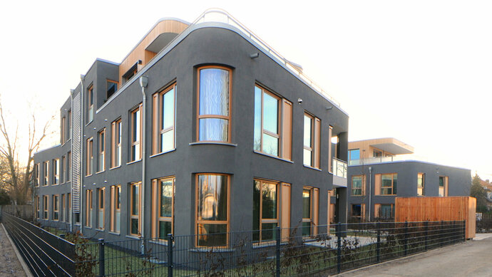 - Gebaut wurden zwei Mehrfamilienhäuser mit Tiefgarage: ca. 1.435 m² Wohnfläche verteilt auf 10 Wohneinheiten