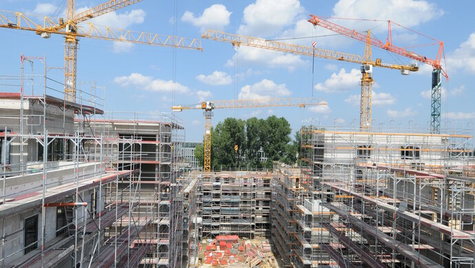 Baubeginn: Tiefgarage: November 2012, Gebäude C1, B1, B2 und A1: November 2013, Gebäude A2, B3, B4 und C2: Mai 2014