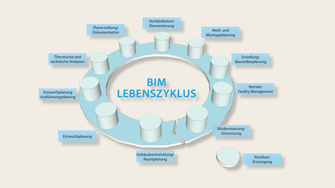 Umsetzung: Aufbau im BIM-Modell, Massenermittlung, Datengewinnung für Ausschreibung der Einzelgewerke