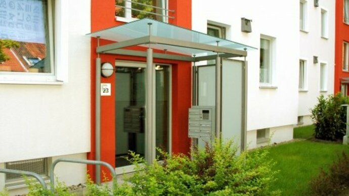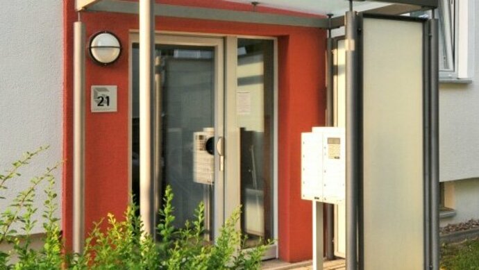 Gleichzeitig wurden im Rahmen dieser energetischen Modernisierung bei allen drei Häusern die Hauseingänge mit neuen Türen, Vordächern und Briefkästen aufgewertet und die Häuser mit frischen Farben verschönert sowie die Grünanlagen aufgearbeitet.