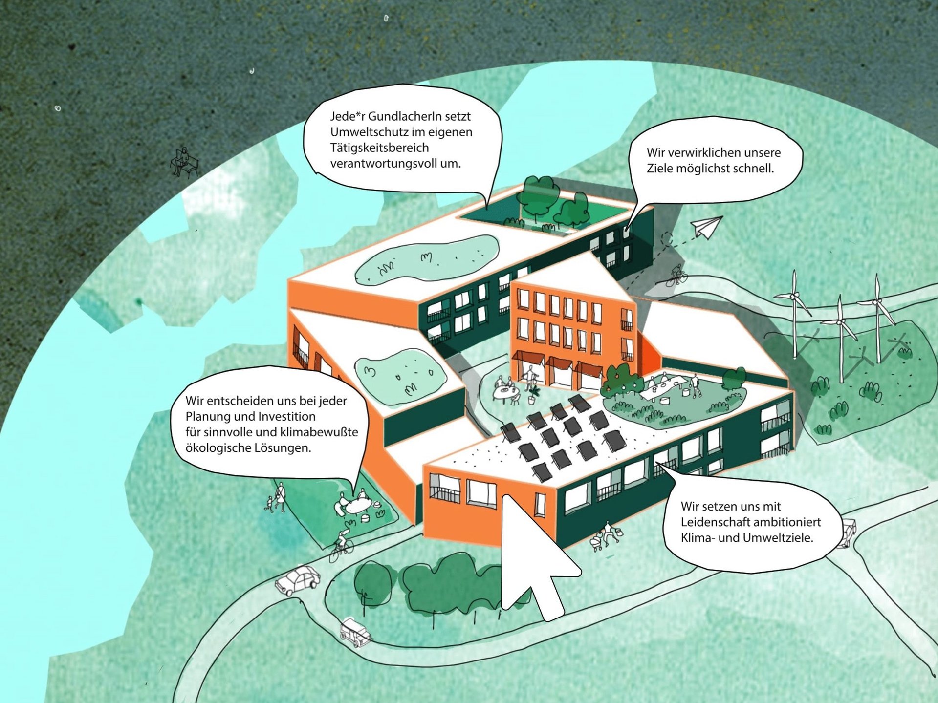 Für alle unsere Projekte, ob Neubau oder Umbau im Bestand, gelten unsere Ökologie-Leitlinien (ÖLL). Von der Baugrundbewertung über den Schutz von Boden und Vegetation, die Minderung von Baulärm, den Einsatz geeigneter Baumaterialien bis zur Information der Nachbarn und der Öffentlichkeit geben die ÖLLs Orientierung zur möglichst ökologischen Umsetzung. Verantwortlich für die Umsetzung ist die jeweilige Projektleiterin oder der Projektleiter. In einem eigens hierfür entwickelten Bewertungsbogen sind alle Themenfelder systematisch eingetragen. Bereits hier wird eine Einschätzung über Mehrkosten durch besonders ökologisches Vorgehen gegeben. Wo dagegen Kompromisse nicht vermeidbar sind, ist dies ausführlich zu begründen.