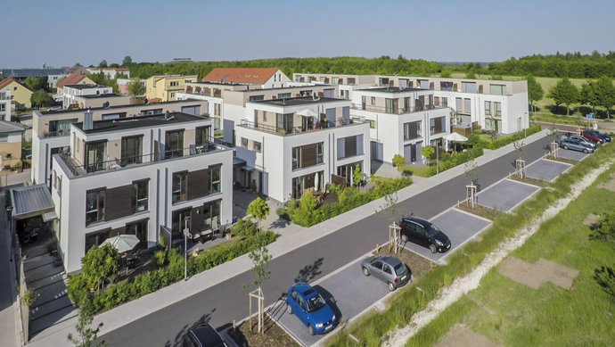 Die Reihen- und Doppelhäuser mit fünf Zimmern verfügen über ca. 140 - 160 m² Wohnfläche. Die außergewöhnliche Architektur, die Ausführung als KfW Effizienzhaus 55 EnEV 2009, die großzügigen Dachterrassen, hochwertige Sanitärausstattungen, lichtdurchflutete Räume und Lüftungsanlagen sind als Besonderheiten heraus zu heben. Wohnen im Grünen mit guter Infrastruktur und Verkehrsanbindung.