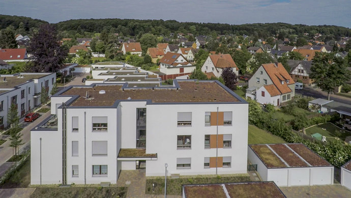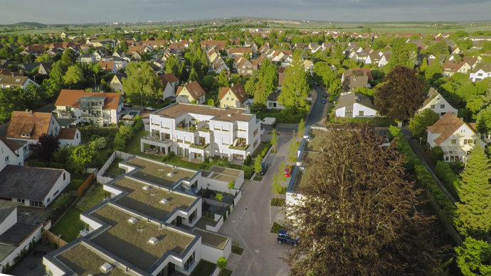 - Moderne Architektur und Gestaltung der Außenanlagen, begrünte Flachdächer