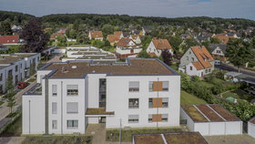 - Die Wohneinheiten besitzen entweder eine Terrasse mit Garten, einen großen Balkon oder eine Dachterrasse