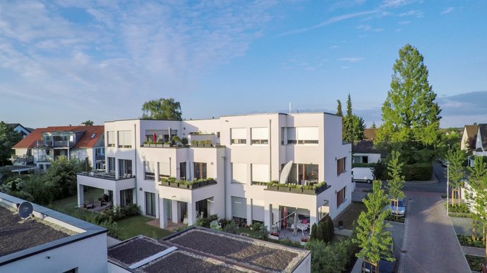 - Hochwertige Innenausstattung, wie z. B. in jeder Wohnung elektrisch betriebene Rollläden, Fußbodenheizung, Parkett und eine Multimediaverkabelung