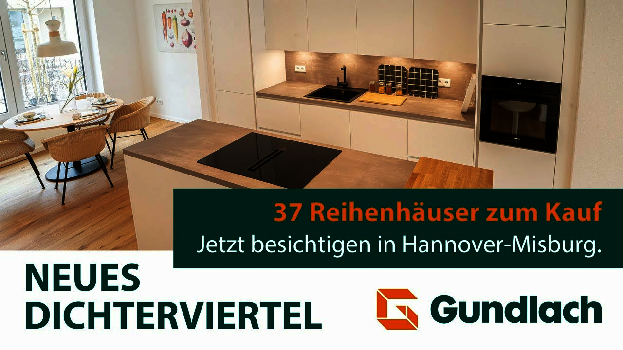 Morgens mit dem Hund am Mittellandkanal spazieren, dann entspannt mit der Straßenbahn zur Arbeit in die Innenstadt und abends mit den Kindern im Garten spielen. Im Misburger Dichterviertel im Baugebiet Steinbruchsfeld entsteht ein Wohnquartier ideal für Familien. Wir bieten dort 37 Reihenhäuser mit vier bis fünf Zimmern und einer Fläche von 117 bis 165 Quadratmetern auf drei Ebenen.