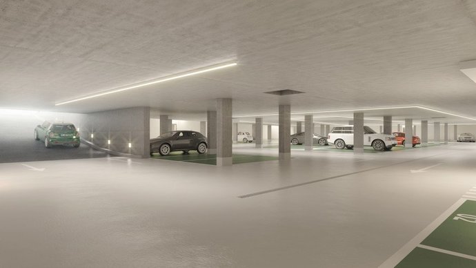 Durch Abstaffelungen in den oberen Geschossen fügt sich die Neubaustruktur wie selbstverständlich in den Umgebungszusammenhang ein. Drei große Durchgänge ermöglichen den Zugang zum Innenhof. Alle Wohnungen verfügen entweder über einen Balkon oder eine Dachterrasse.