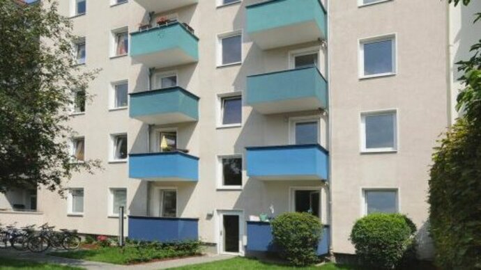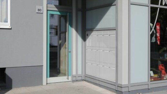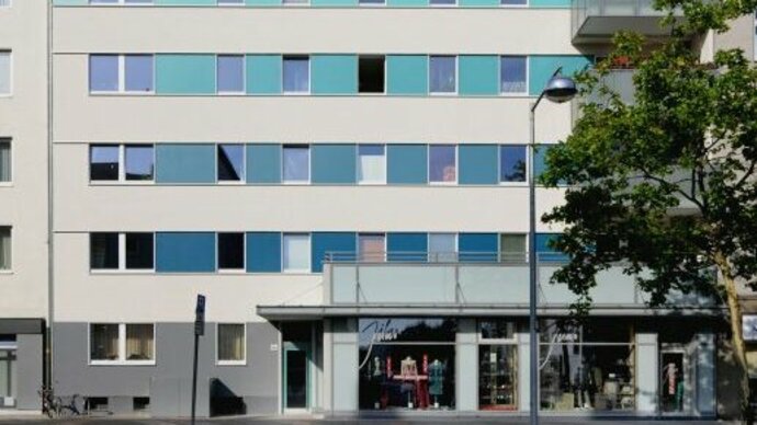 Da die rückseitige Fassade bereits im Jahr 2000 energetisch modernisiert wurde, ist das Haus, Baujahr 1954, mit 12 Wohnungen und einer 117 m² großen Ladenfläche nun komplett gegen Kälte und Lärm gerüstet. Gleichzeitig wurden die Balkone saniert, eine Breitbandkabelverteilung installiert und eine neue Gegensprechanlage eingebaut. Das Treppenhaus wurde wurde gründlich renoviert und verschönert, die Ladenfassade erneuert und der Garten neu angelegt.